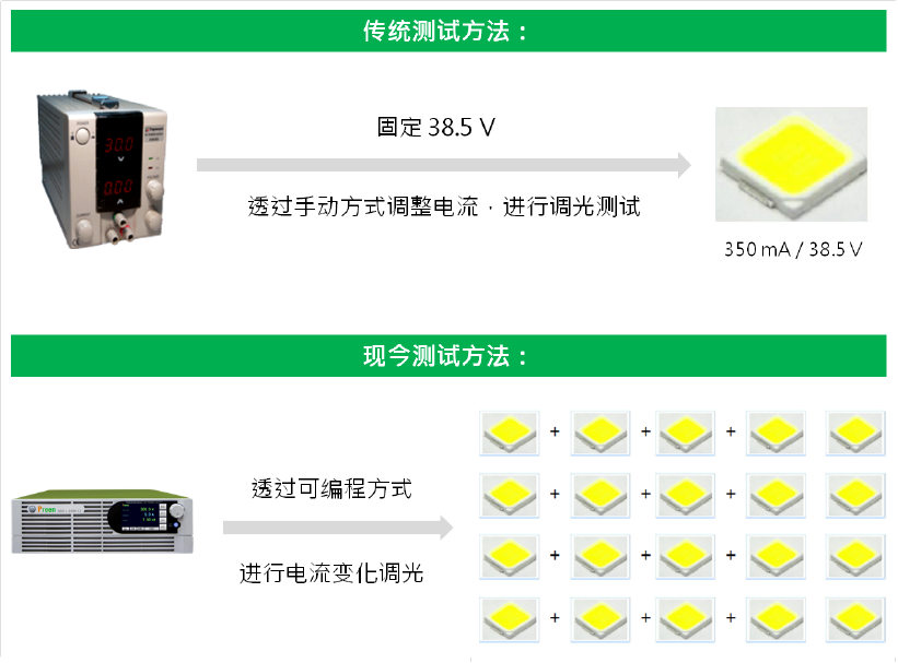 因應全球LED市場發展,芯片與封裝測試大躍進:以大量同步測試取代單一手動測試。LED照明產品是人類生活之必需品,包含日常燈具、屏幕、車用照明與建筑景觀照明,而智慧調光燈控與健康人因照明,更是現今燈具發展趨勢,除此之外,全球各地政府積極提倡節能LED照明以及智能照明解決方案,響應智慧城市、綠能和永續發展,再反映了LED市場的熱度。