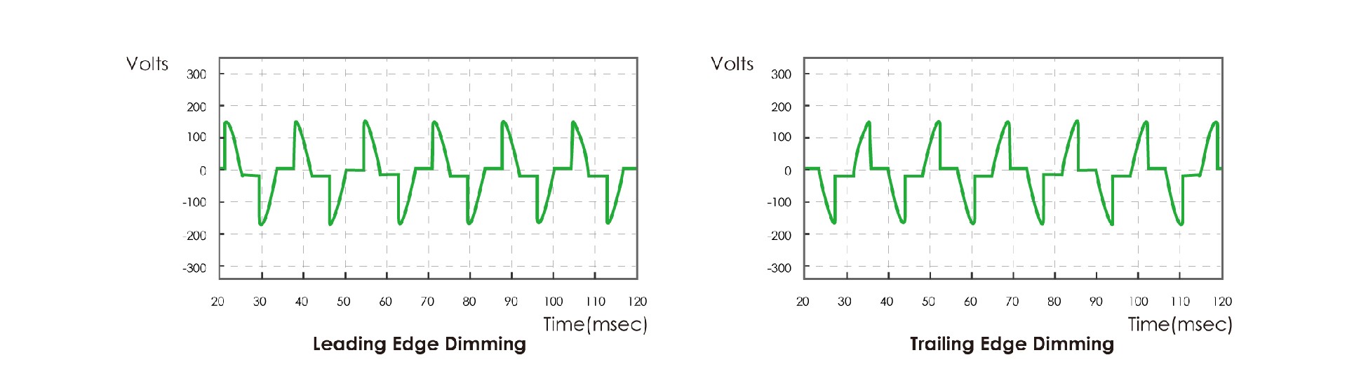 智能調光的方式數不勝數,其中「相位角調光」的方法廣受歡迎,因成本便宜、不需額外配線等優勢促使許多家庭大都采用此系統控制燈光亮度,是最為普遍的一種調光方式。在相位角調光器中又區分為前沿調光器(Leading Edge Dimmer) 與后沿調光器(Trailing Edge Dimmer)。